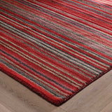 Carter is a wool rug that has brightly coloured stripes. The vibrancy attracts a playful nature and the stripes help the rug blend in to different settings.  Ideal for Living rooms or playrooms while being very soft underfoot.