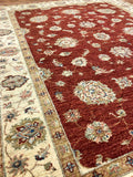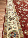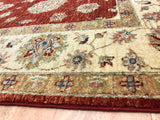 This rug is a traditional hand knotted rug. The pattern is called Ziegler and can be produced in different colour ways. This deep rust red tone is very traditional colour way. The deep colours add depth and warm while displaying a classic look. This design gives a distinct style, which will be timeless in any room in your home.