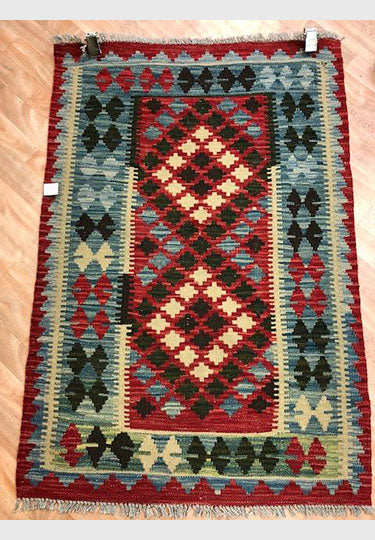 This hand knotted vegetable dyed Kilim rug is vibrant and striking it will be a statement in any home. The tribal design gives warmth and colour in small spaces.