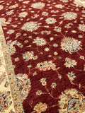 This rug is a traditional hand knotted rug. The pattern is called Ziegler and can be produced in different colour ways. This deep red tone is very traditional colour way. The deep colours add depth and warm while displaying a classic look. This design gives a distinct style, which will be timeless in any room in your home.